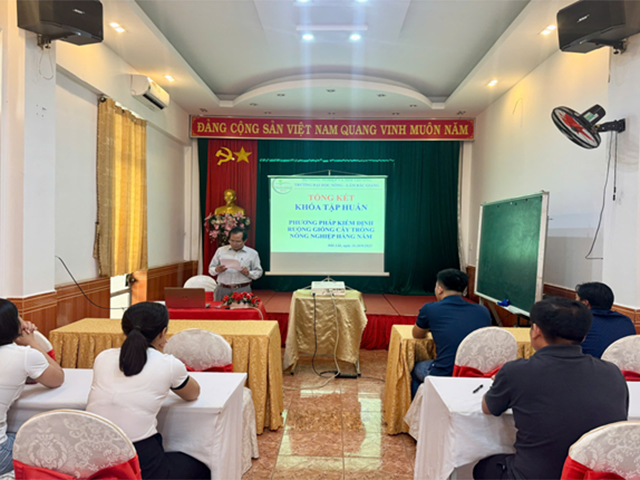 Phát biểu tổng kết khóa học, PGS.TS. Lê Quý Tường ghi nhận tinh thần học tập nghiêm túc và kết quả đạt được của các học viên. Ông khẳng định, khóa tập huấn không chỉ góp phần nâng cao năng lực chuyên môn cho đội ngũ cán bộ kỹ thuật, mà còn giúp tăng cường liên kết giữa Nhà trường với các viện, doanh nghiệp và địa phương trong lĩnh vực giống cây trồng.