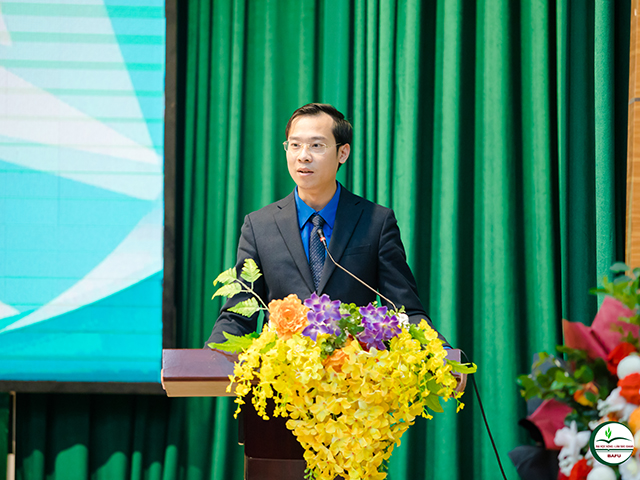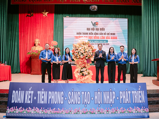 Đồng chí Hà Thái Sơn - Phó Bí thư Tỉnh đoàn, Chủ tịch Hội LHTN tỉnh Bắc Ninh phát biểu và tặng hoa chúc mừng Phát biểu tại Đại hội, đồng chí Hà Thái Sơn ghi nhận và biểu dương những kết quả nổi bật của tuổi trẻ Trường Đại học Nông – Lâm Bắc Giang trong công tác Đoàn và phong trào thanh niên thời gian qua. Đồng chí đề nghị Đoàn trường tiếp tục tăng cường giáo dục lý tưởng, bản lĩnh chính trị, đẩy mạnh chuyển đổi số, phát huy vai trò trí thức trẻ trong nghiên cứu khoa học, khởi nghiệp sáng tạo và hoạt động tình nguyện vì cộng đồng. Đại diện Tỉnh đoàn cũng nhấn mạnh yêu cầu đổi mới sinh hoạt chi đoàn, nâng cao chất lượng cán bộ Đoàn, lan tỏa mô hình “lớp học không tường”, hỗ trợ chuyển giao tri thức số, hướng tới xây dựng lớp thanh niên “vừa hồng, vừa chuyên”, tiên phong hội nhập và khát vọng cống hiến.