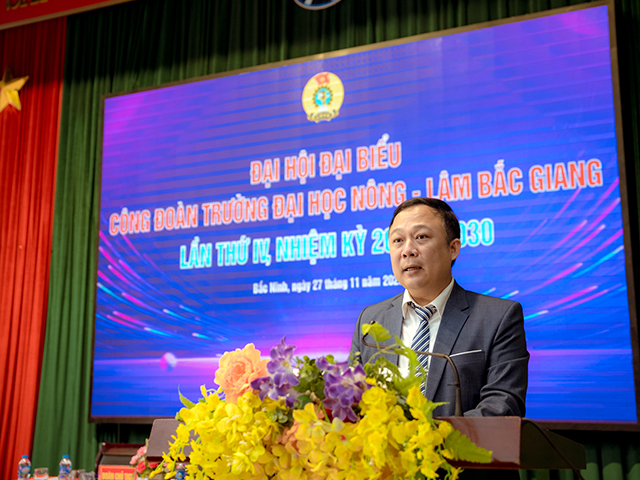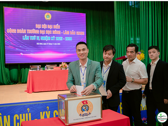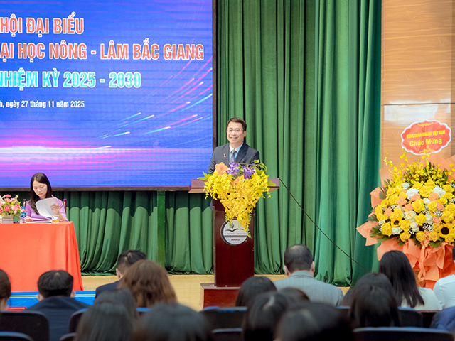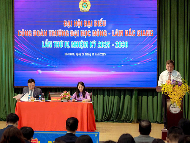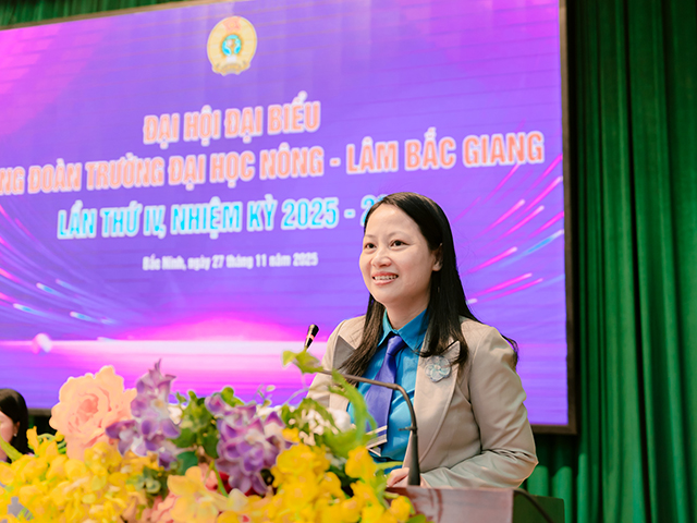 Sáng 27/11/2025, Trường Đại học Nông - Lâm Bắc Giang tổ chức Đại hội đại biểu Công đoàn lần thứ IV, nhiệm kỳ 2025 - 2030. Đại hội có sự tham dự và chỉ đạo của đồng chí Phan Thị Huệ - Phó Chủ tịch Công đoàn Nông nghiệp và Môi trường Việt Nam, cùng GS.TS. Phạm Bảo Dương - Bí thư Đảng ủy, Hiệu trưởng Nhà trường, các lãnh đạo phòng, khoa, trung tâm và 150 đại biểu chính thức.