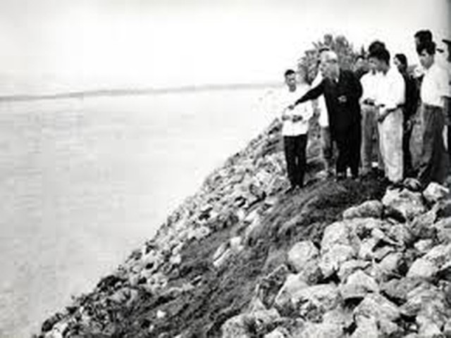 Bác Hồ thăm kè bảo vệ sông Đà ở Cổ Đô, huyện Ba Vì, tỉnh Hà Tây (1958)