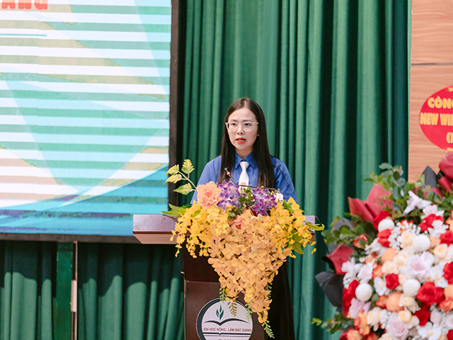 Đồng chí Hà Thái Sơn - Phó Bí thư Tỉnh đoàn, Chủ tịch Hội LHTN tỉnh Bắc Ninh phát biểu và tặng hoa chúc mừng Phát biểu tại Đại hội, đồng chí Hà Thái Sơn ghi nhận và biểu dương những kết quả nổi bật của tuổi trẻ Trường Đại học Nông – Lâm Bắc Giang trong công tác Đoàn và phong trào thanh niên thời gian qua. Đồng chí đề nghị Đoàn trường tiếp tục tăng cường giáo dục lý tưởng, bản lĩnh chính trị, đẩy mạnh chuyển đổi số, phát huy vai trò trí thức trẻ trong nghiên cứu khoa học, khởi nghiệp sáng tạo và hoạt động tình nguyện vì cộng đồng. Đại diện Tỉnh đoàn cũng nhấn mạnh yêu cầu đổi mới sinh hoạt chi đoàn, nâng cao chất lượng cán bộ Đoàn, lan tỏa mô hình “lớp học không tường”, hỗ trợ chuyển giao tri thức số, hướng tới xây dựng lớp thanh niên “vừa hồng, vừa chuyên”, tiên phong hội nhập và khát vọng cống hiến.