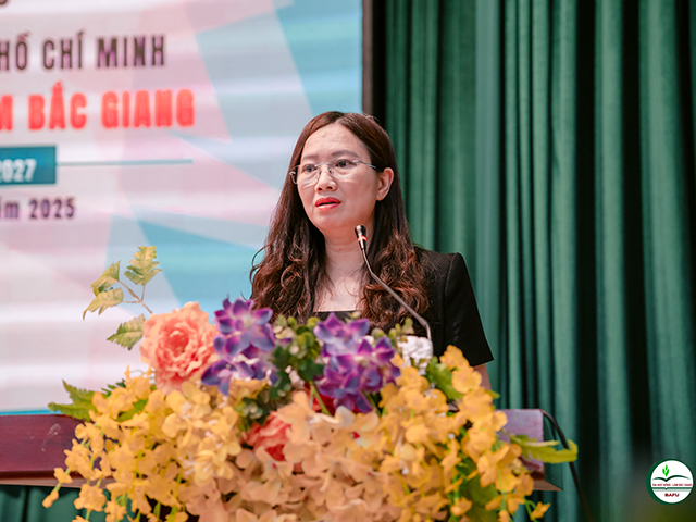 Đồng chí Phan Thị Hà Châm - Bí thư Đoàn trường khóa VI phát biểu tại Đại hội, khẳng định quyết tâm với khẩu hiệu hành động: “Tuổi trẻ BAFU Đoàn kết – Tiên phong – Sáng tạo – Hội nhập – Phát triển”. Đại hội Đại biểu Đoàn TNCS Hồ Chí Minh Trường Đại học Nông – Lâm Bắc Giang lần thứ VII, nhiệm kỳ 2025- 2027 với sự tham dự của lãnh đạo Tỉnh đoàn Bắc Ninh, Ban Giám hiệu Nhà trường, đại diện các đơn vị trực thuộc cùng 140 đại biểu ưu tú đến từ các chi đoàn và liên chi đoàn. Đây là những gương mặt tiêu biểu đại diện cho trí tuệ, nhiệt huyết và tinh thần xung kích của tuổi trẻ Nhà trường.