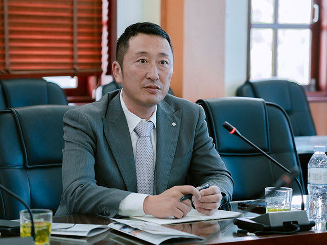 TS. Nguyễn Tuấn Dương - Phó Hiệu trưởng Nhà trường phát biểu Tại buổi làm việc, TS. Nguyễn Tuấn Dương - Phó Hiệu trưởng Nhà trường nhấn mạnh: “Trong nhiều năm qua, Trường Đại học Nông - Lâm Bắc Giang luôn chú trọng nâng cao chất lượng đào tạo và nghiên cứu ứng dụng. Chúng tôi rất vui mừng đón tiếp Tập đoàn HSS là doanh nghiệp có bề dày lịch sử và công nghệ hàng đầu Nhật Bản để cùng thảo luận những cơ hội hợp tác thiết thực lâu dài.”