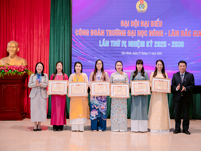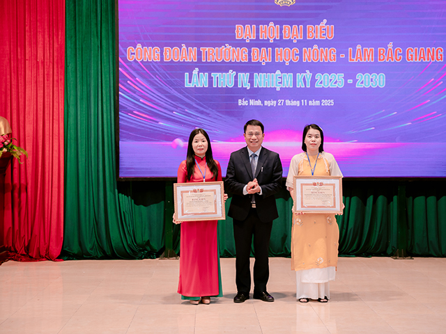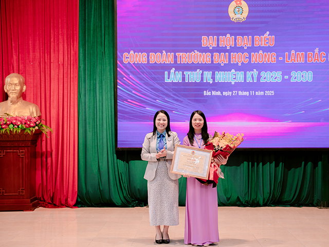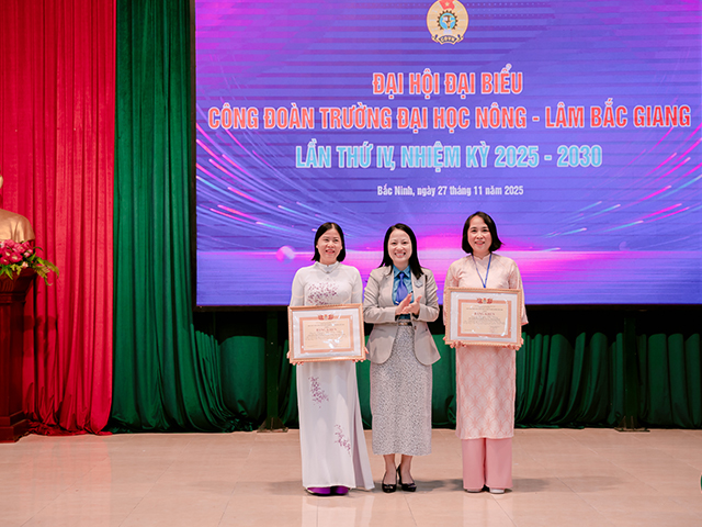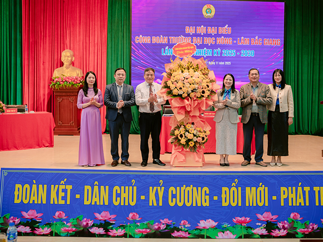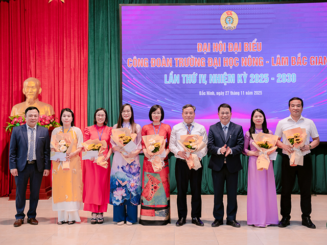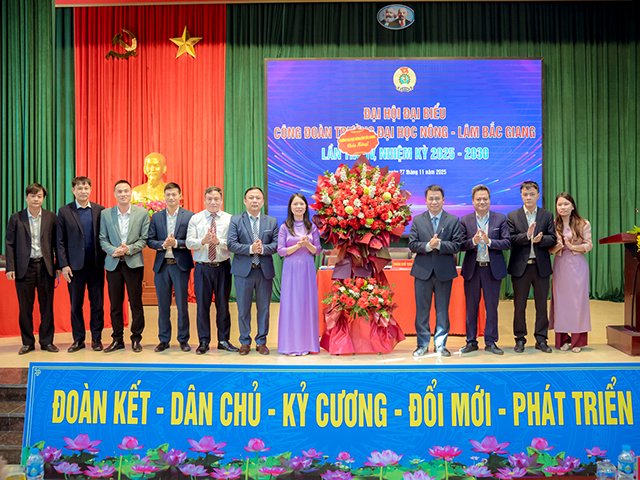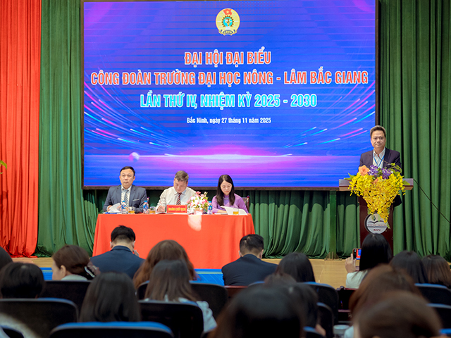 Sáng 27/11/2025, Trường Đại học Nông - Lâm Bắc Giang tổ chức Đại hội đại biểu Công đoàn lần thứ IV, nhiệm kỳ 2025 - 2030. Đại hội có sự tham dự và chỉ đạo của đồng chí Phan Thị Huệ - Phó Chủ tịch Công đoàn Nông nghiệp và Môi trường Việt Nam, cùng GS.TS. Phạm Bảo Dương - Bí thư Đảng ủy, Hiệu trưởng Nhà trường, các lãnh đạo phòng, khoa, trung tâm và 150 đại biểu chính thức.