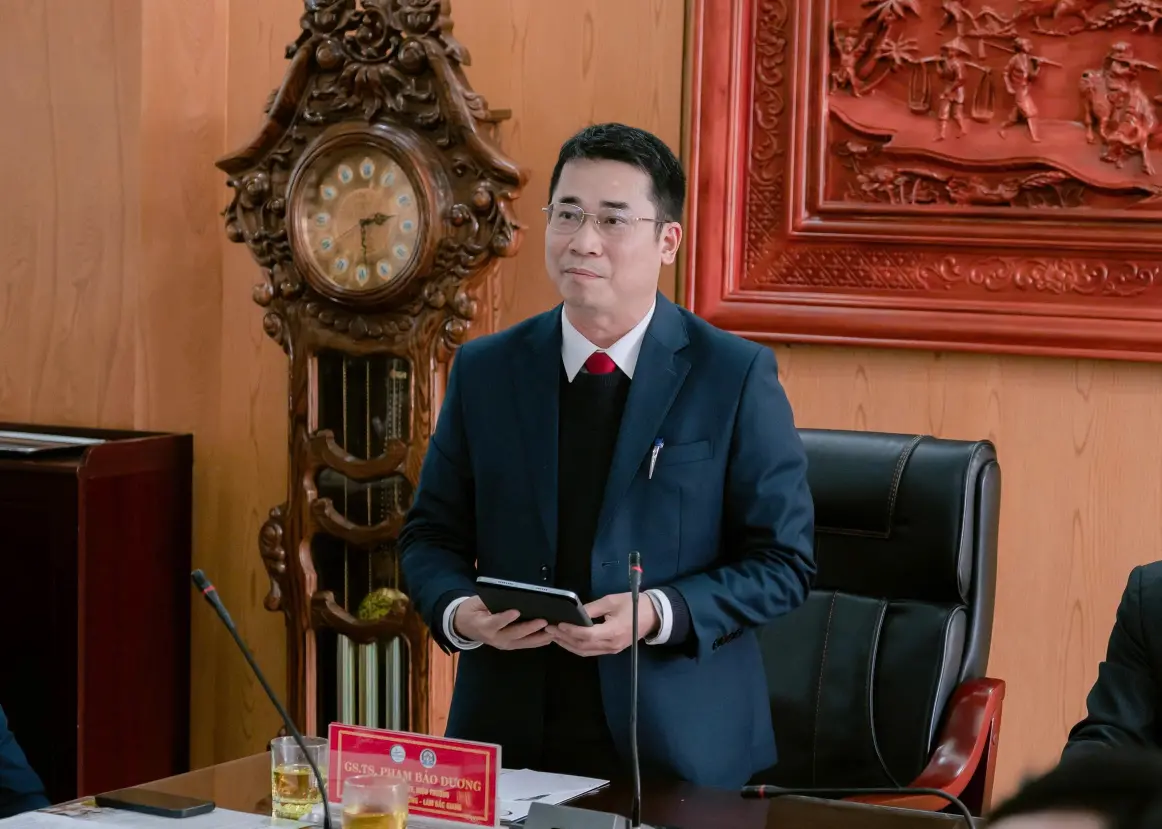 GS.TS. Phạm Bảo Dương - Bí thư Đảng ủy, Hiệu trưởng Trường Đại học Nông – Lâm Bắc Giang phát biểu khai mạc Phát biểu khai mạc chương trình, GS.TS. Phạm Bảo Dương – Bí thư Đảng ủy, Hiệu trưởng Trường Đại học Nông – Lâm Bắc Giang nhấn mạnh, AI đang trở thành năng lực nền tảng của giáo dục hiện đại, đòi hỏi các cơ sở đào tạo và đội ngũ nhà giáo phải chủ động tiếp cận, làm chủ và sử dụng công nghệ một cách bài bản, có trách nhiệm. Thông qua hoạt động tập huấn và cuộc thi, Nhà trường hướng tới việc hình thành tư duy ứng dụng AI gắn với thực tiễn, phục vụ hiệu quả cho đào tạo và phát triển kinh tế - xã hội địa phương.