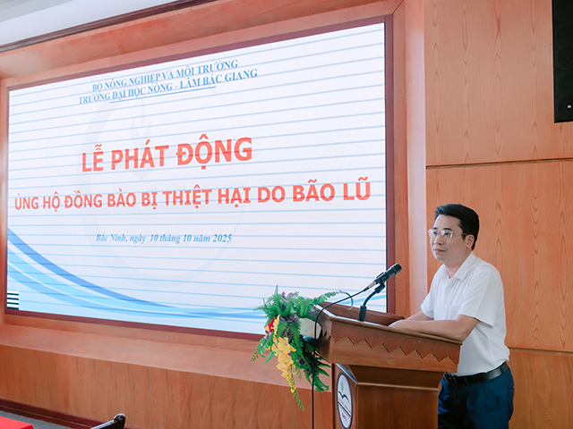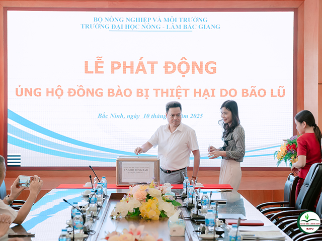 Chiều ngày 10/10/2025, Trường Đại học Nông - Lâm Bắc Giang đã tổ chức Lễ phát động ủng hộ đồng bào bị ảnh hưởng do bão lũ gây ra. Tham dự buổi lễ có Ban Giám hiệu Nhà trường, BCH Công đoàn, Đoàn Thanh niên, cùng đông đảo cán bộ, viên chức, người lao động và sinh viên.